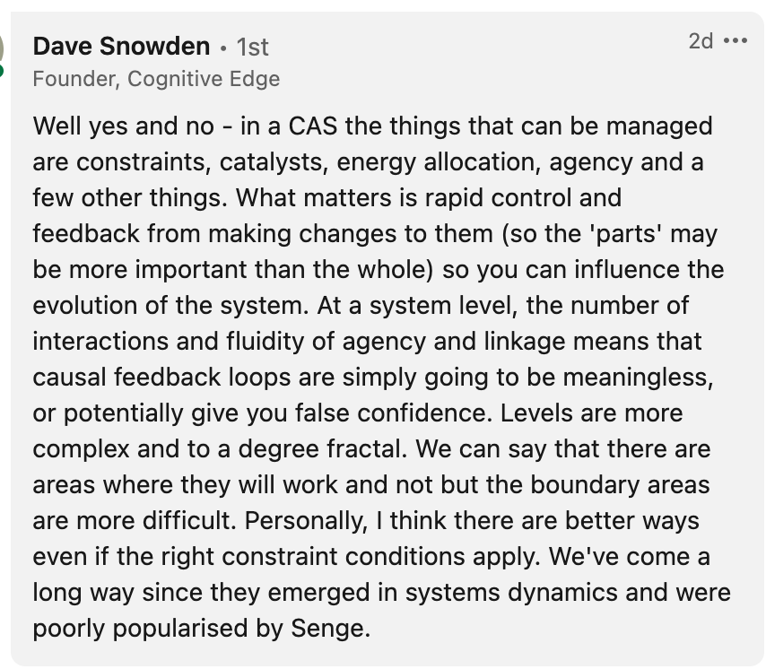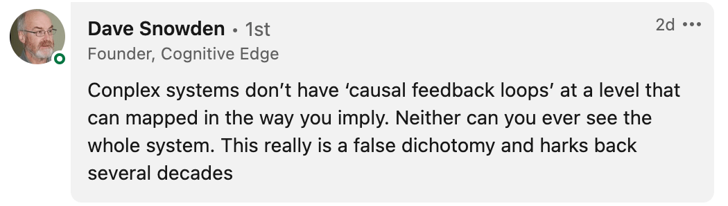 Returning to the discussion, I didn’t mention “casual loop models” in my post. Again considering the “context of my post first”, it is very obvious that my intent is not to promote a model, tool or method.